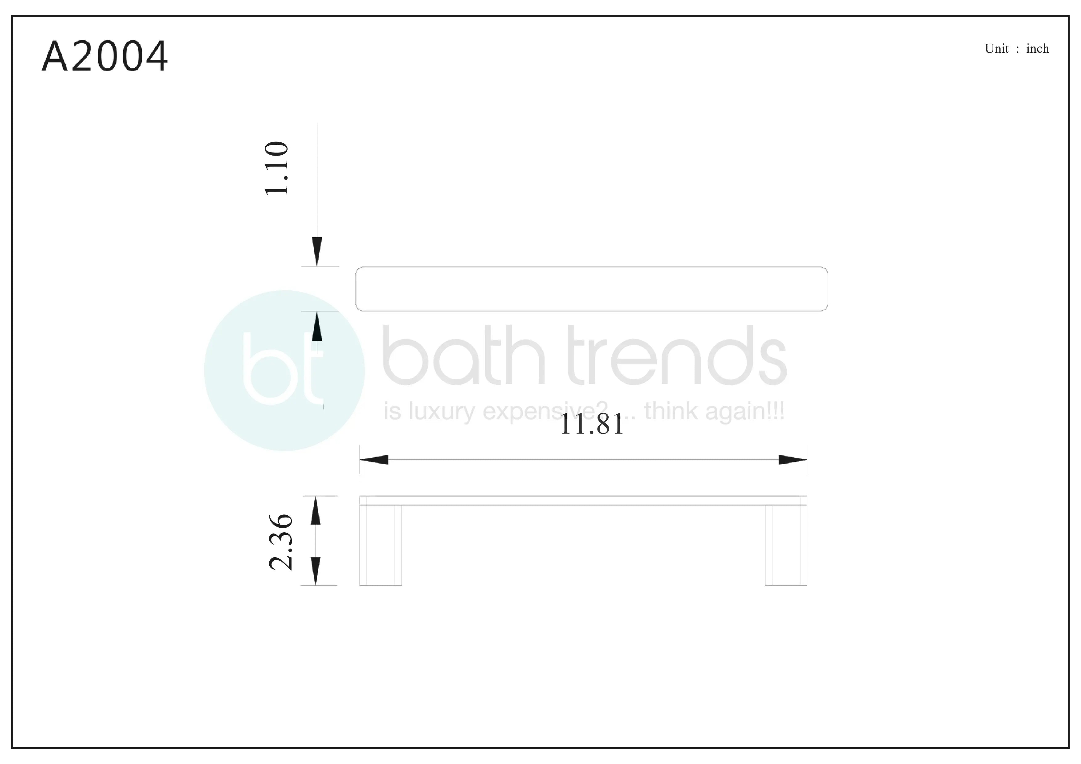 Aquamoon A30 Hand Towel Bar 11.75" Wall Mounted Accessory Chrome Finish