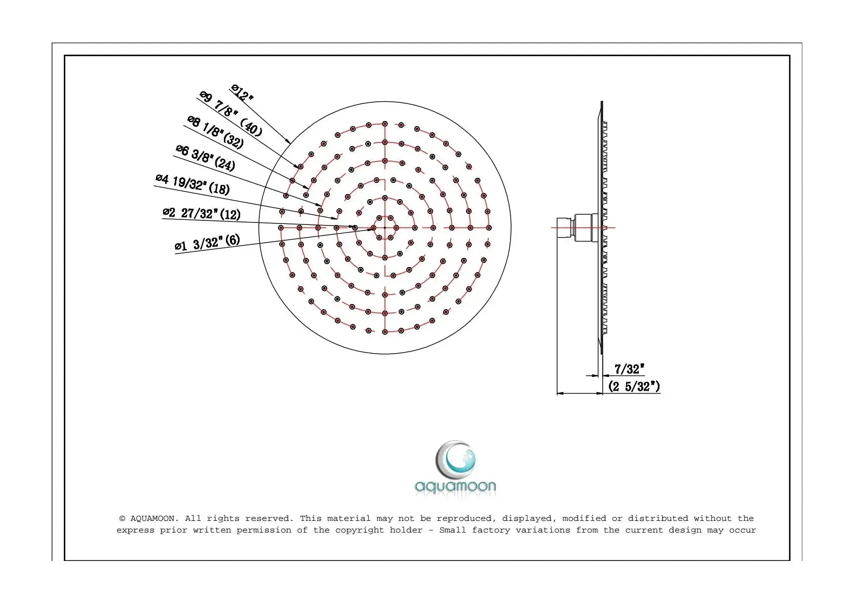 Aquamoon 12" Brush Nickel Round Stainless Steel Shower Head Modern Shower Head 12 x 0.5