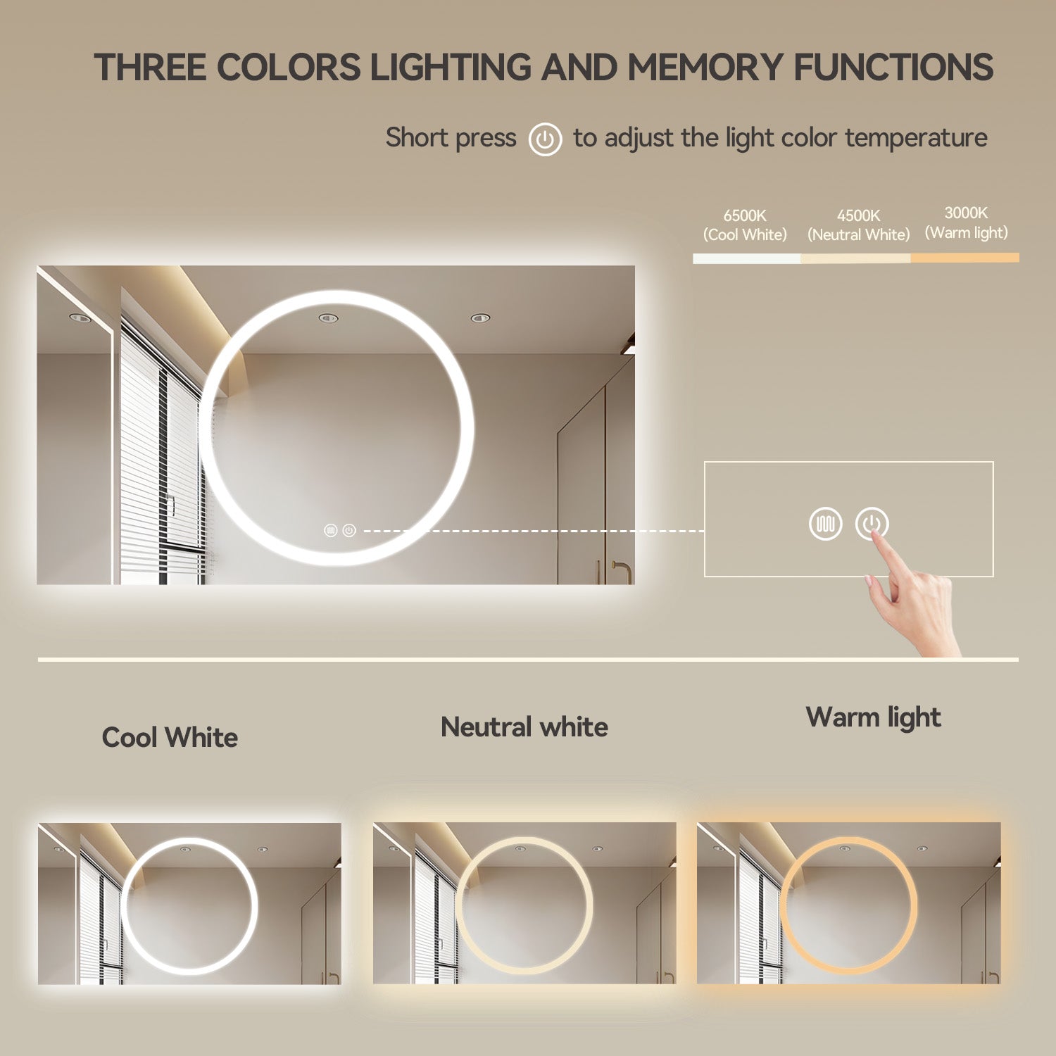 Aquamoon 7399 LED Bathroom Mirror 24" x 31" Wall Mounted With Bottom Front Touch On/Off Switch 6000K High Lumen