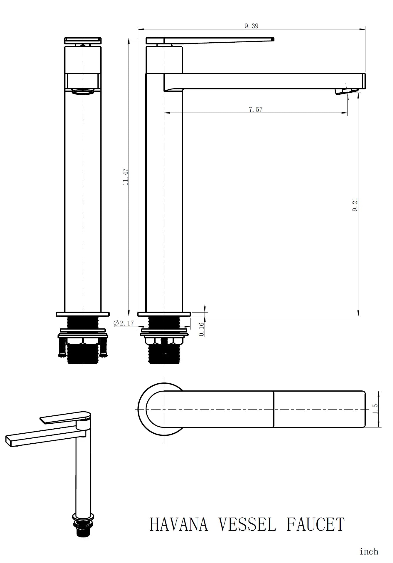 Aquamoon Havana Collection Single Lever Bathroom Vessel Faucet Brush Gold Finish