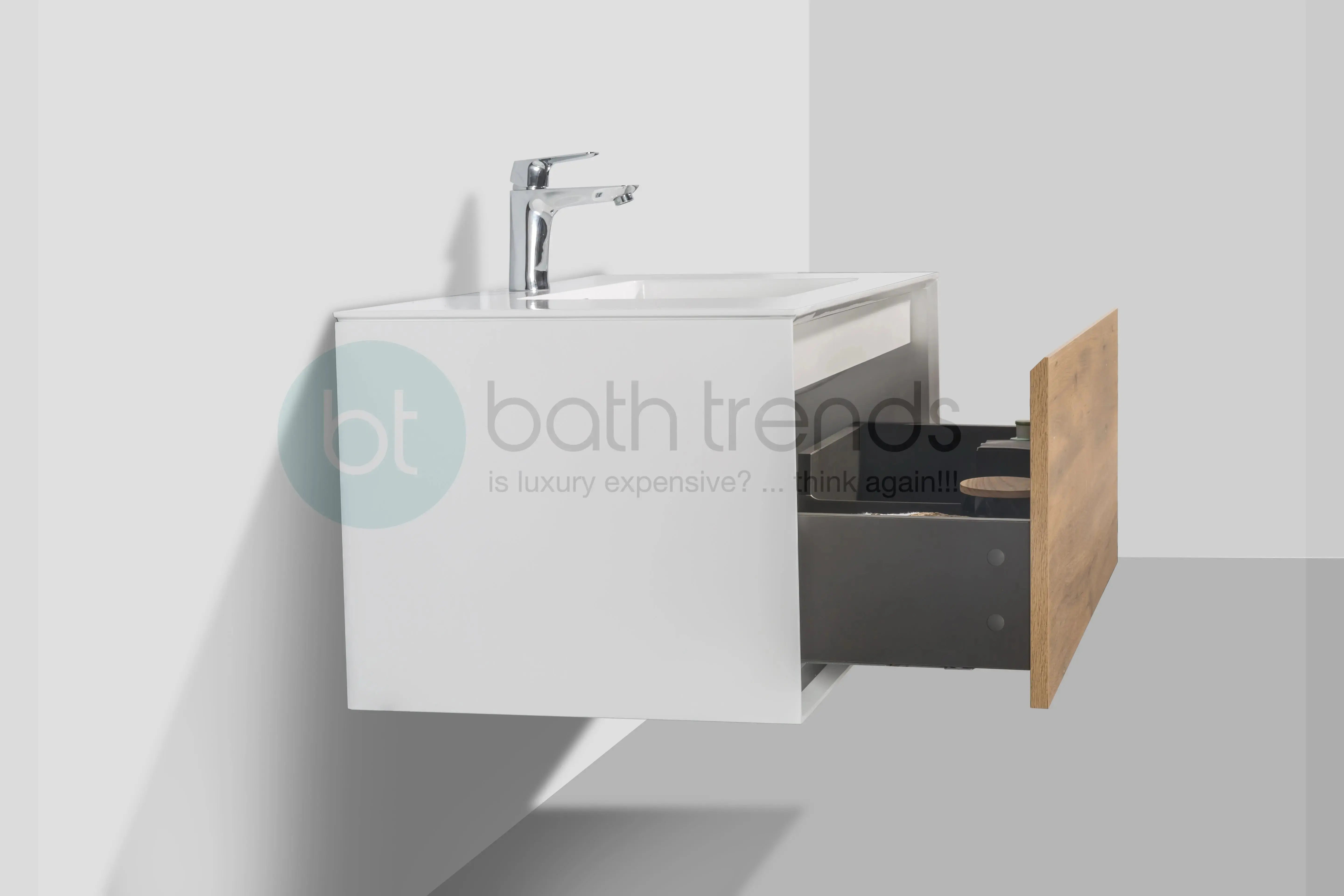Aquamoon Icon 35.5" White Wall Hung Modern Bathroom Sink Vanity Set