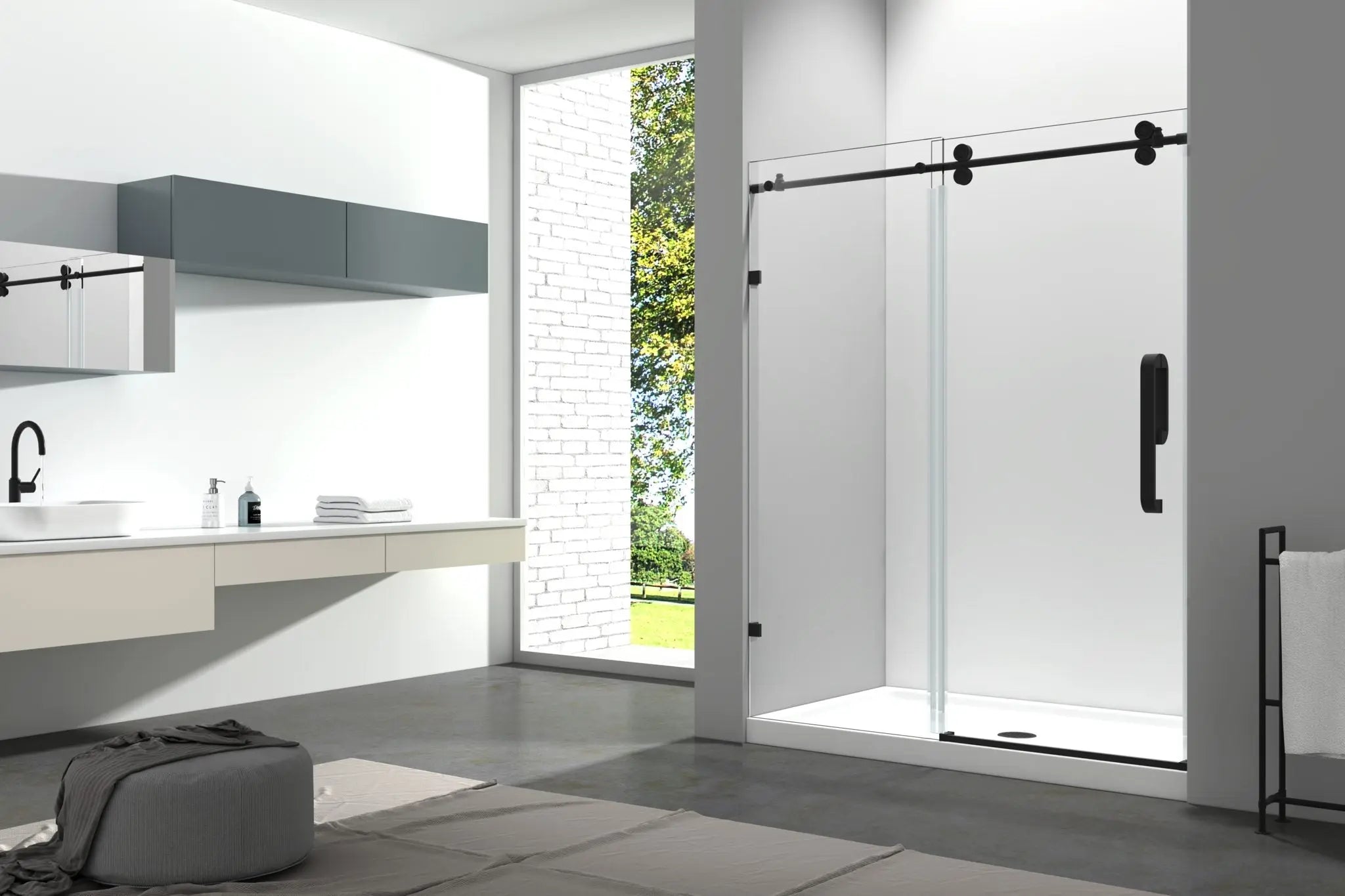 Aquamoon Sky Semi Frameless Shower door W 60" x H 76", One fix Panel, One Sliding, Matte Black Finish