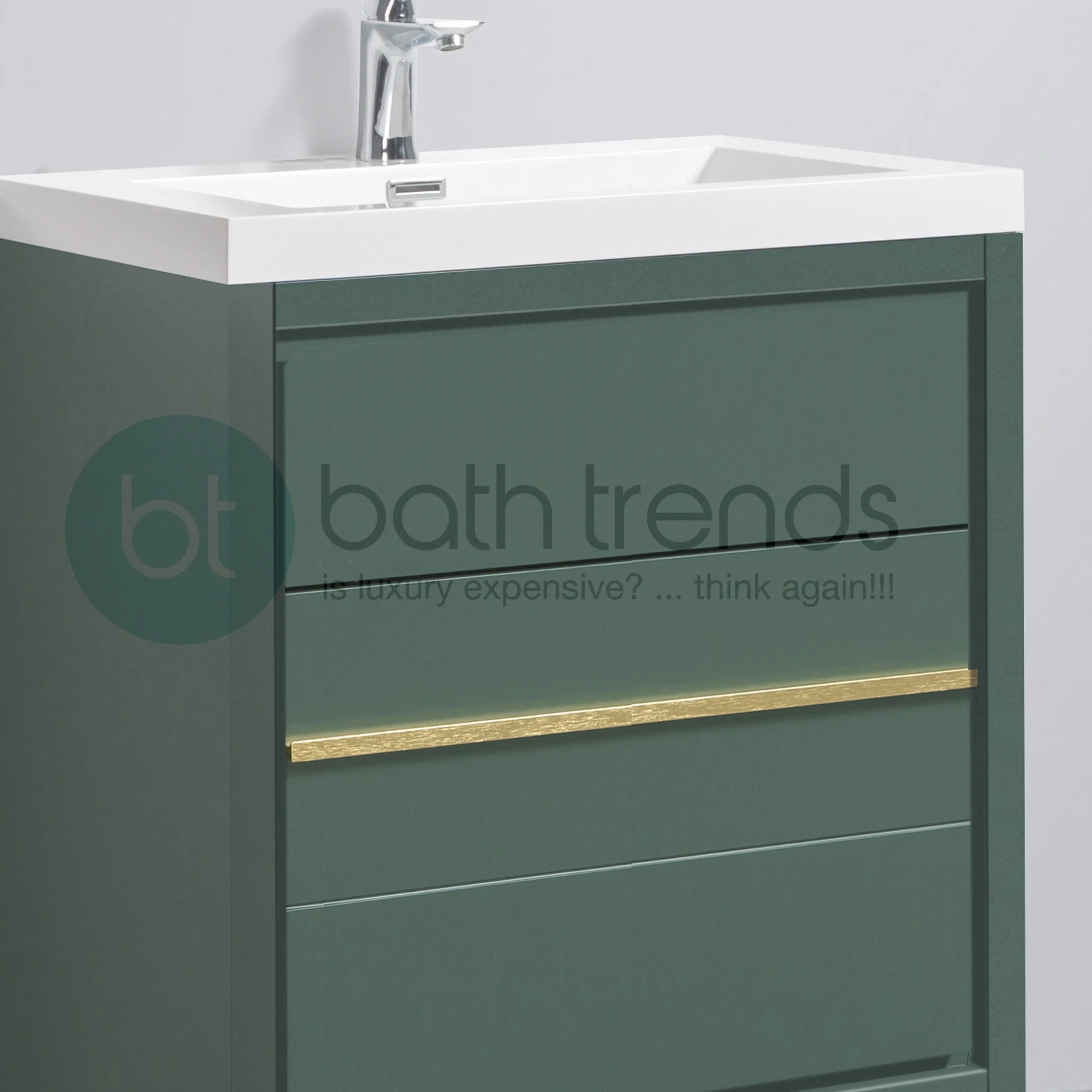 Granada 29.5 Nordic Green With Brush Gold Handle Cabinet, Square Cultured Marble Sink, Free Standing Modern Vanity Set