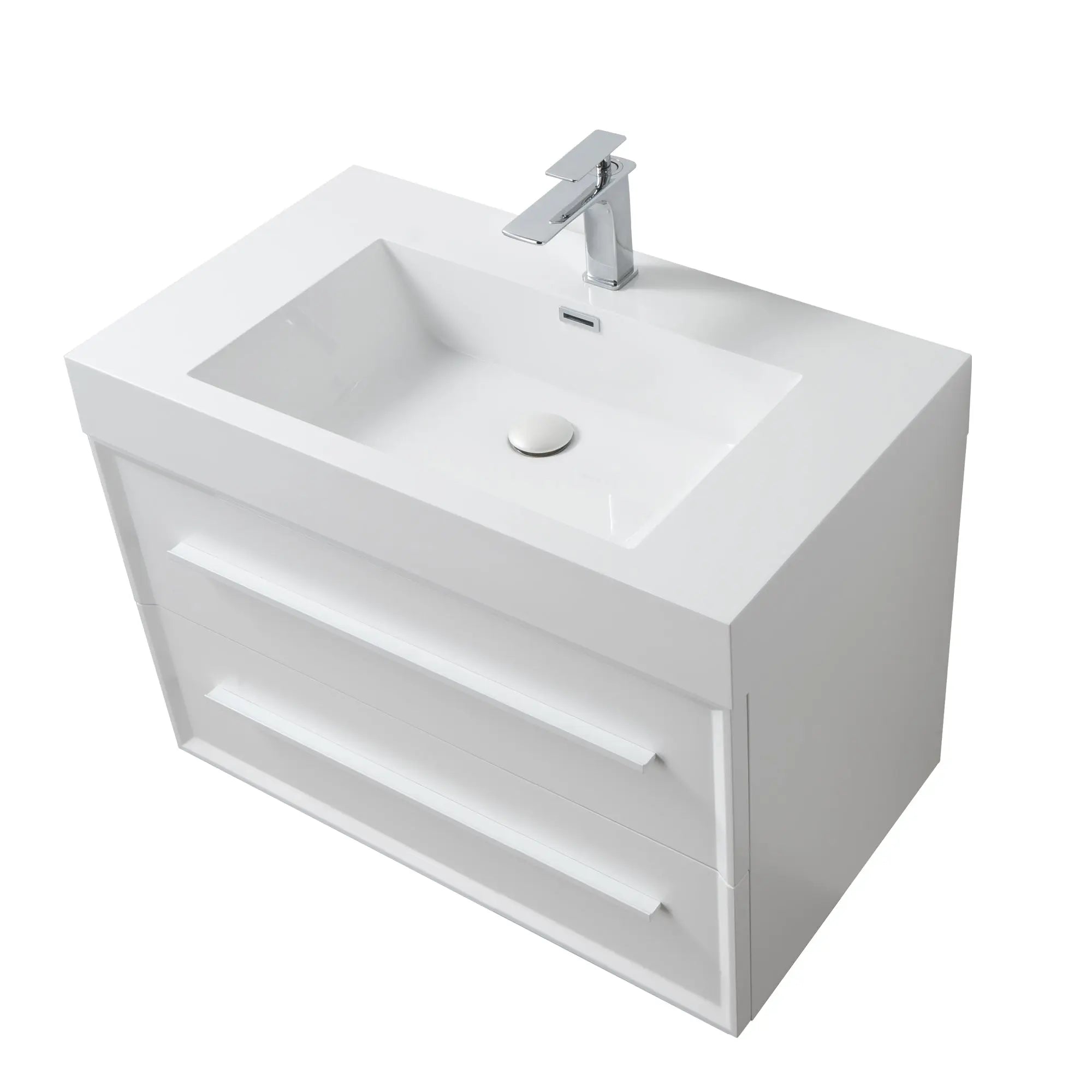 Ibiza 35.5 White Cabinet, Square Cultured Marble Sink, Wall Mounted Modern Vanity Set