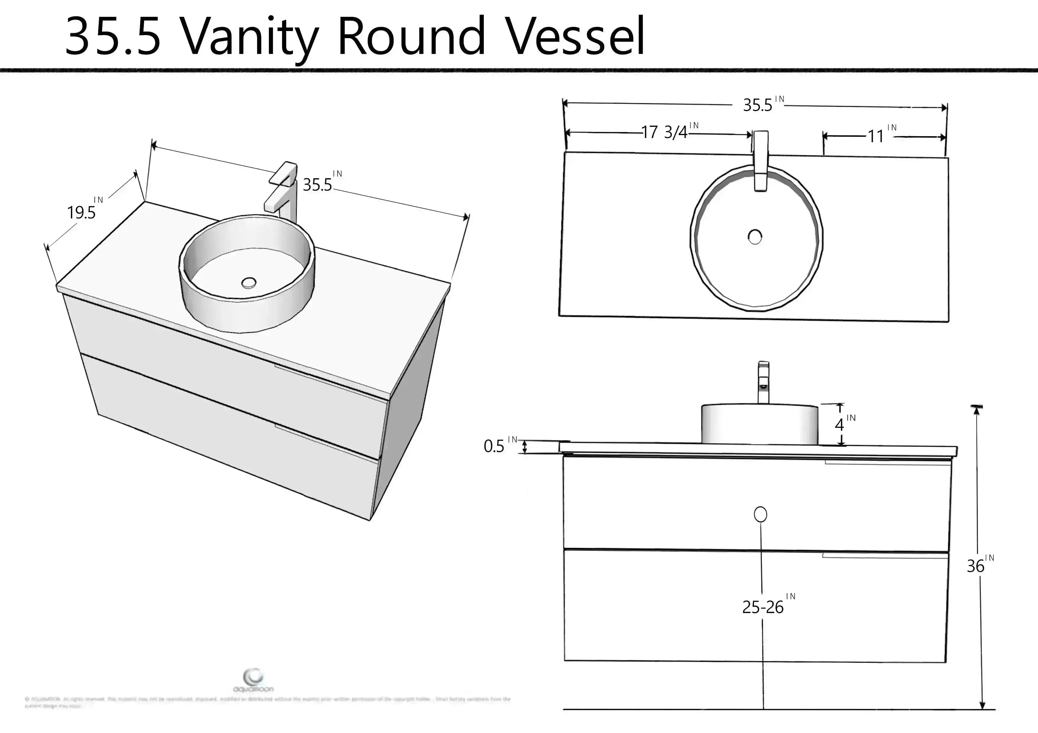 Vision 35.5 Valenti Medium Brown Wood Cabinet, Solid Surface Flat White Counter And Round Solid Surface White Basin 1153, Wall Mounted Modern Vanity Set